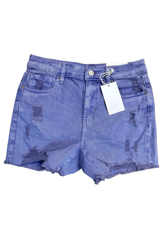 Washed denim shorts w/raw edge