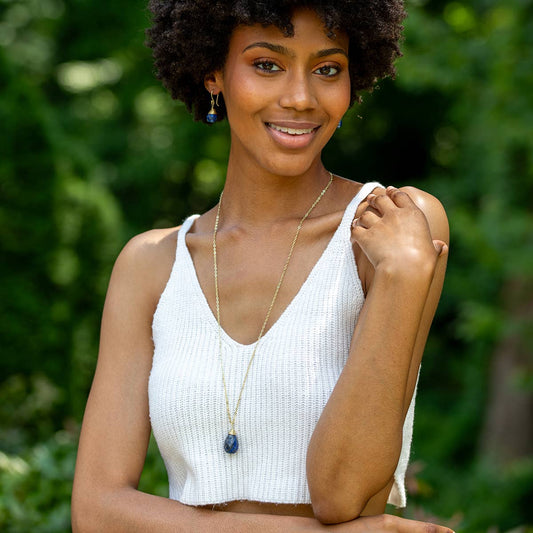 Gold-Plated Lapis Lazuli Teardrop Necklace