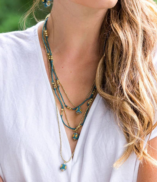 Sachi Coffee & Cream Necklace - Gold Bead & Discs