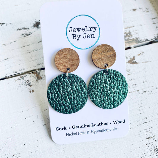 Wood Stud Earrings: Metallic Hunter Green