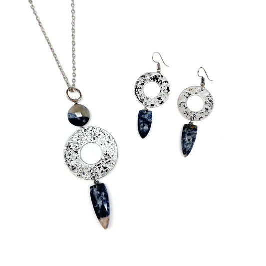 Sodalite, Silver Open Ring necklace