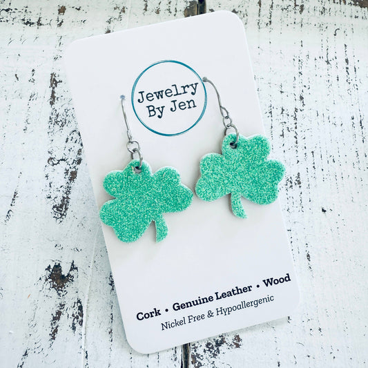 Small Teardrop Earrings: Green w/Shamrock Charm