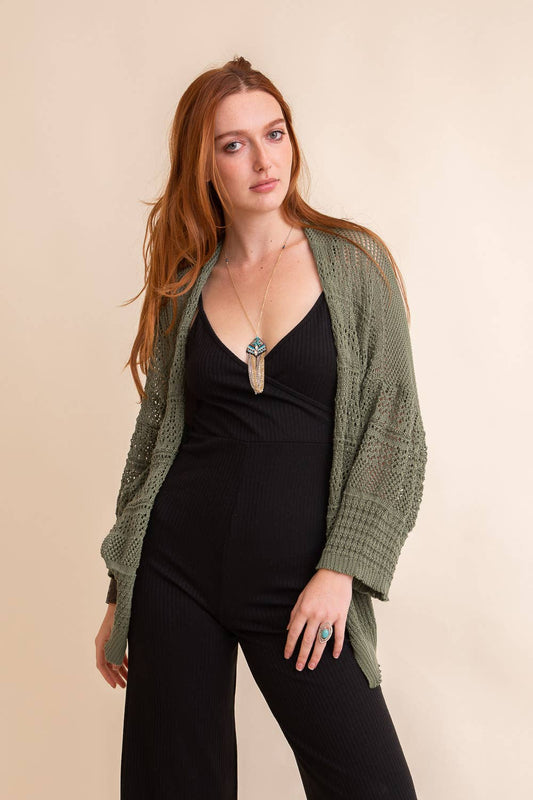 Moss Cozy Open-Front Knit Cardigan
