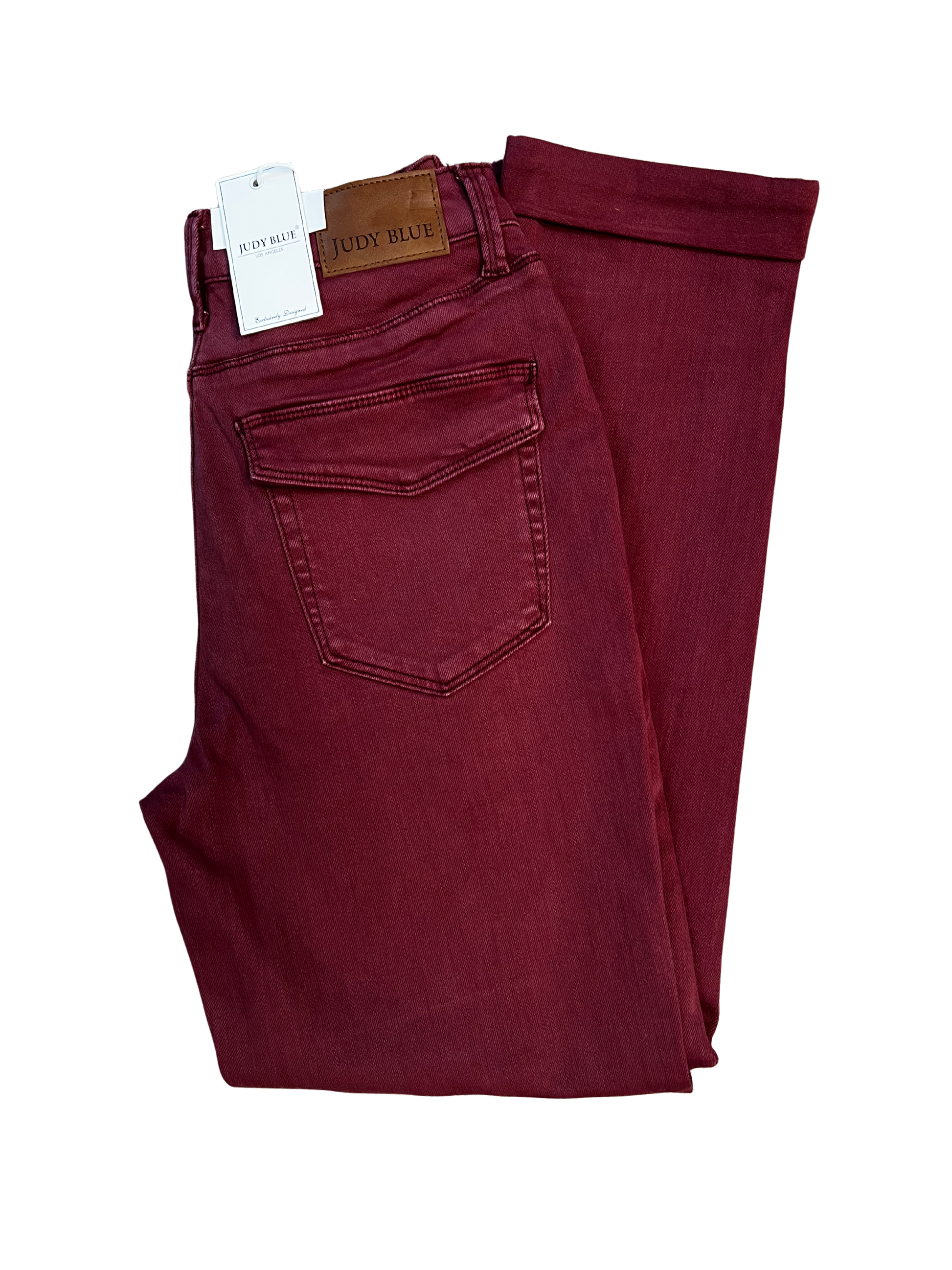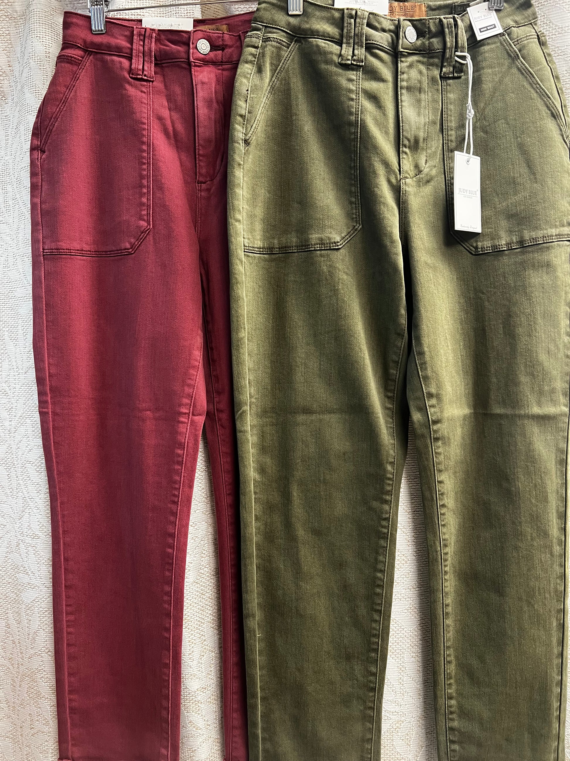 High rise, cuffed weekender garment dyed. Available in 2 colors. (Dark forest, burgundy).