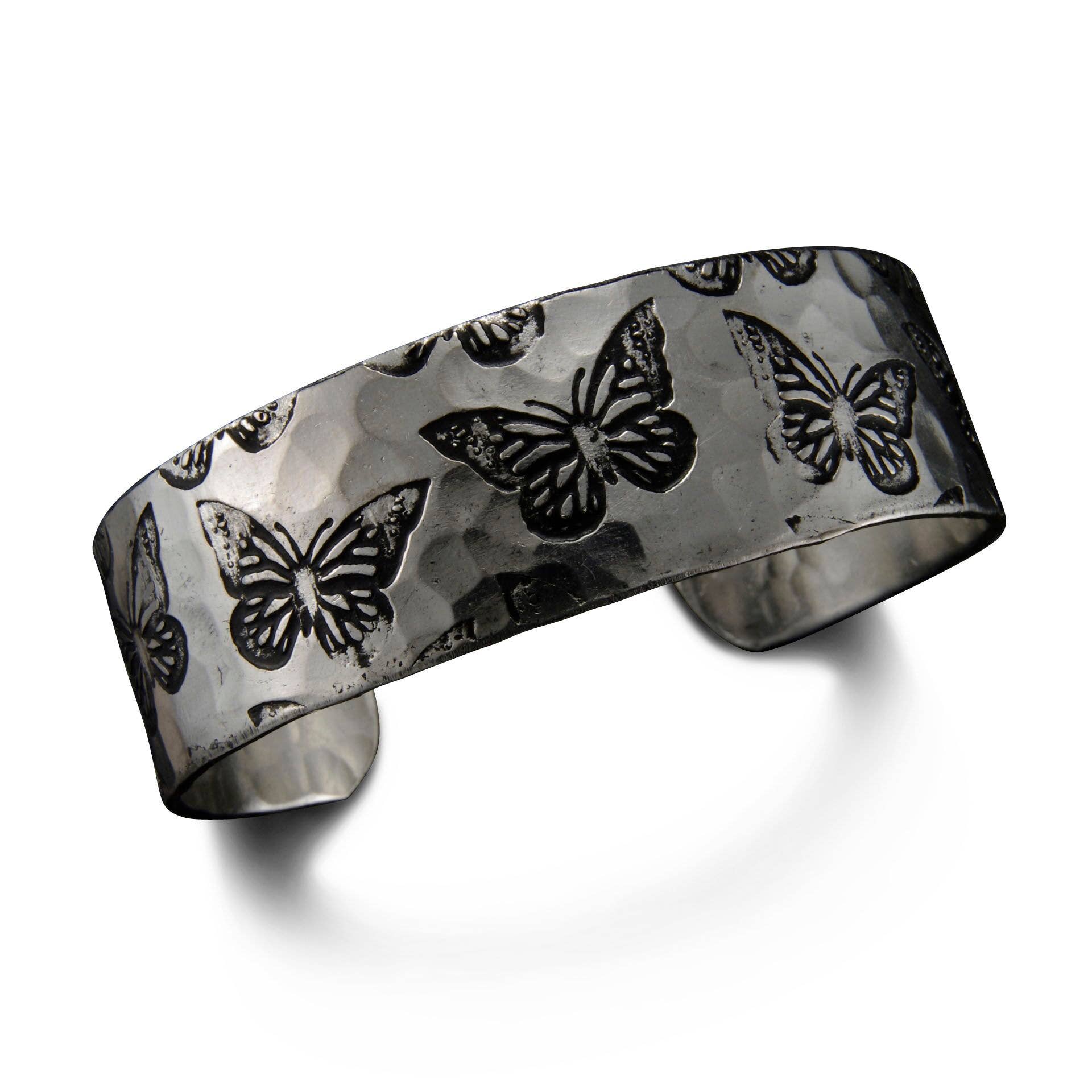 Engraved metal adjustable cuff bracelet, handmade by artisans.