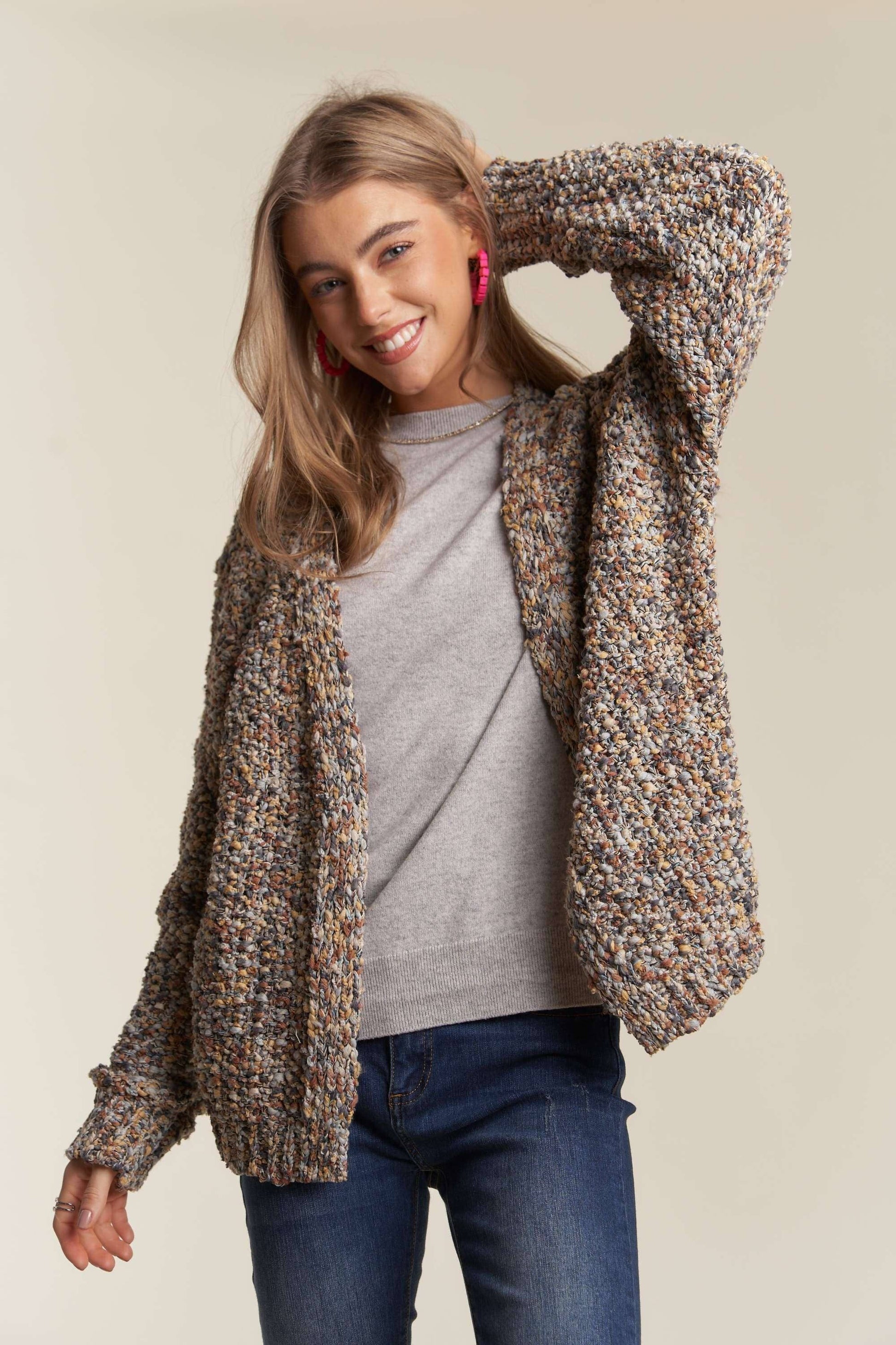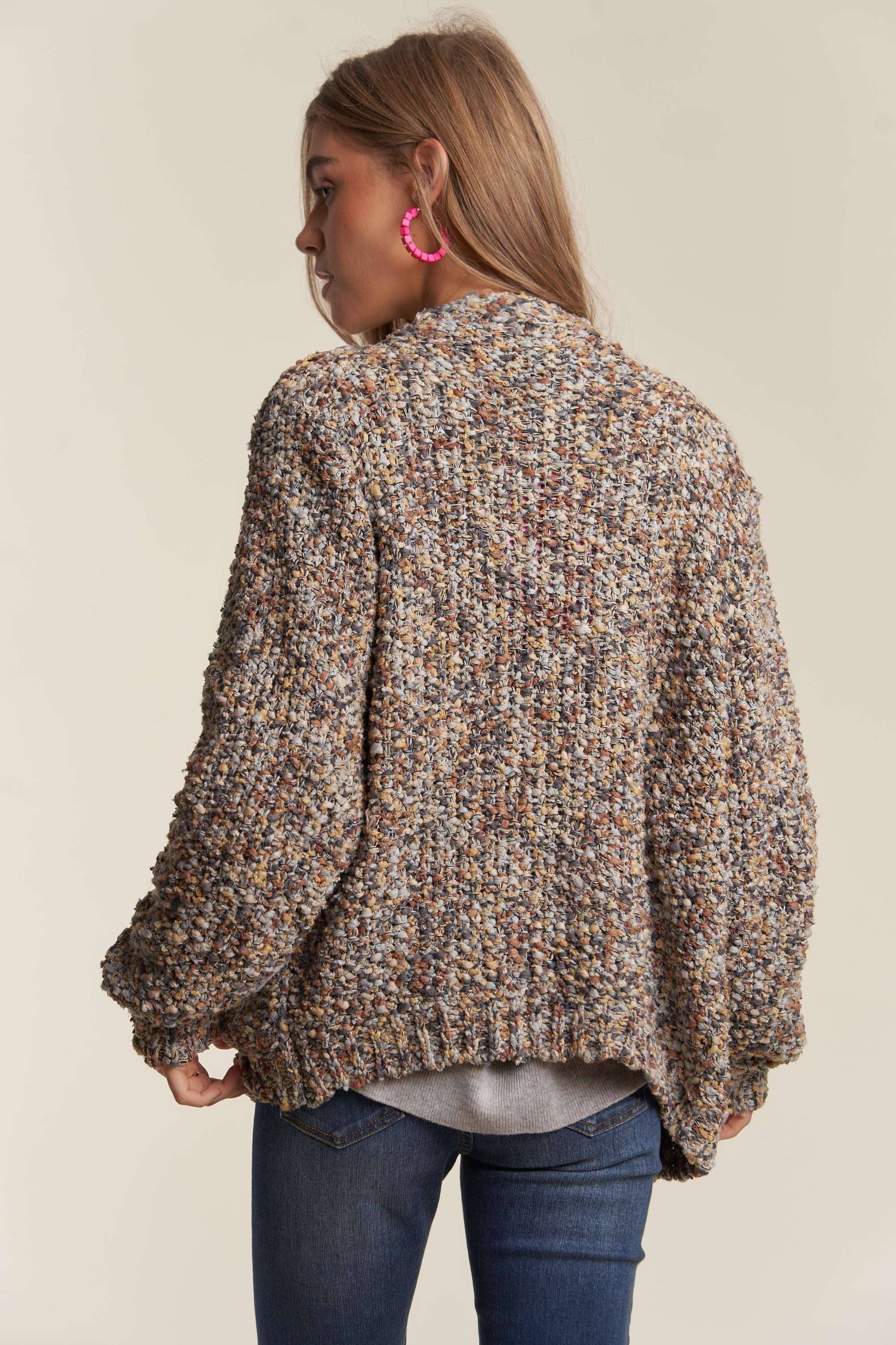 Multicolored loose fit cozy & cute cardigan sweater with long sleeves.