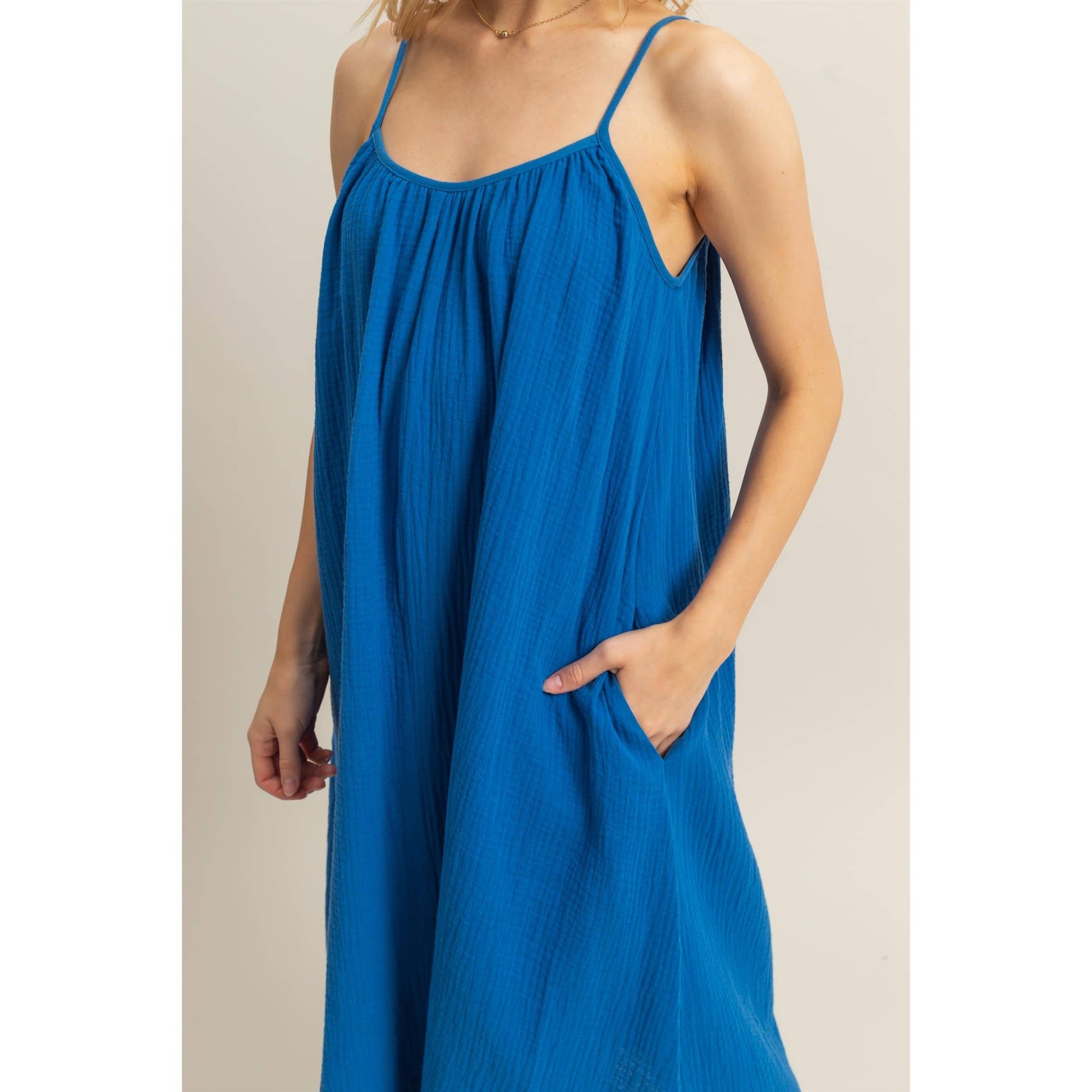 Flowy breezy dress, An Elasticized Neckline Is Held Together With Spaghetti Straps As The Dress Falls Into A Flowy Silhouette. The Dress Ends In A Midi Hem.