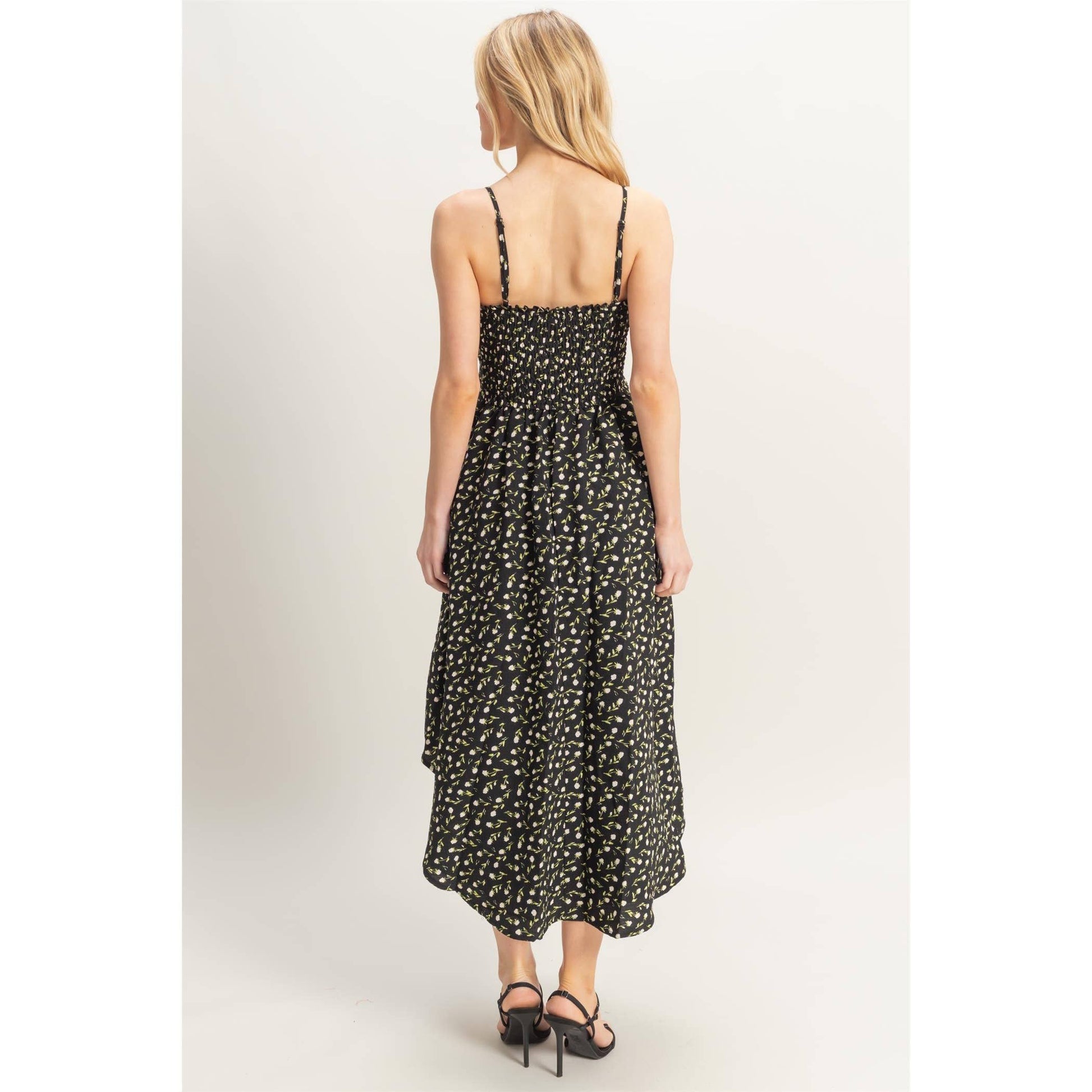 You will be Amazed At How Good You Look In This Dress! Decorated With A Ditsy Floral Print, The Dress Has Dainty Shoulder Straps With Ruched Detailing Along The Bust, Accented With A Self-Tie String. It Falls Into A Flowy Silhouette And Ends In A Midi Hem.