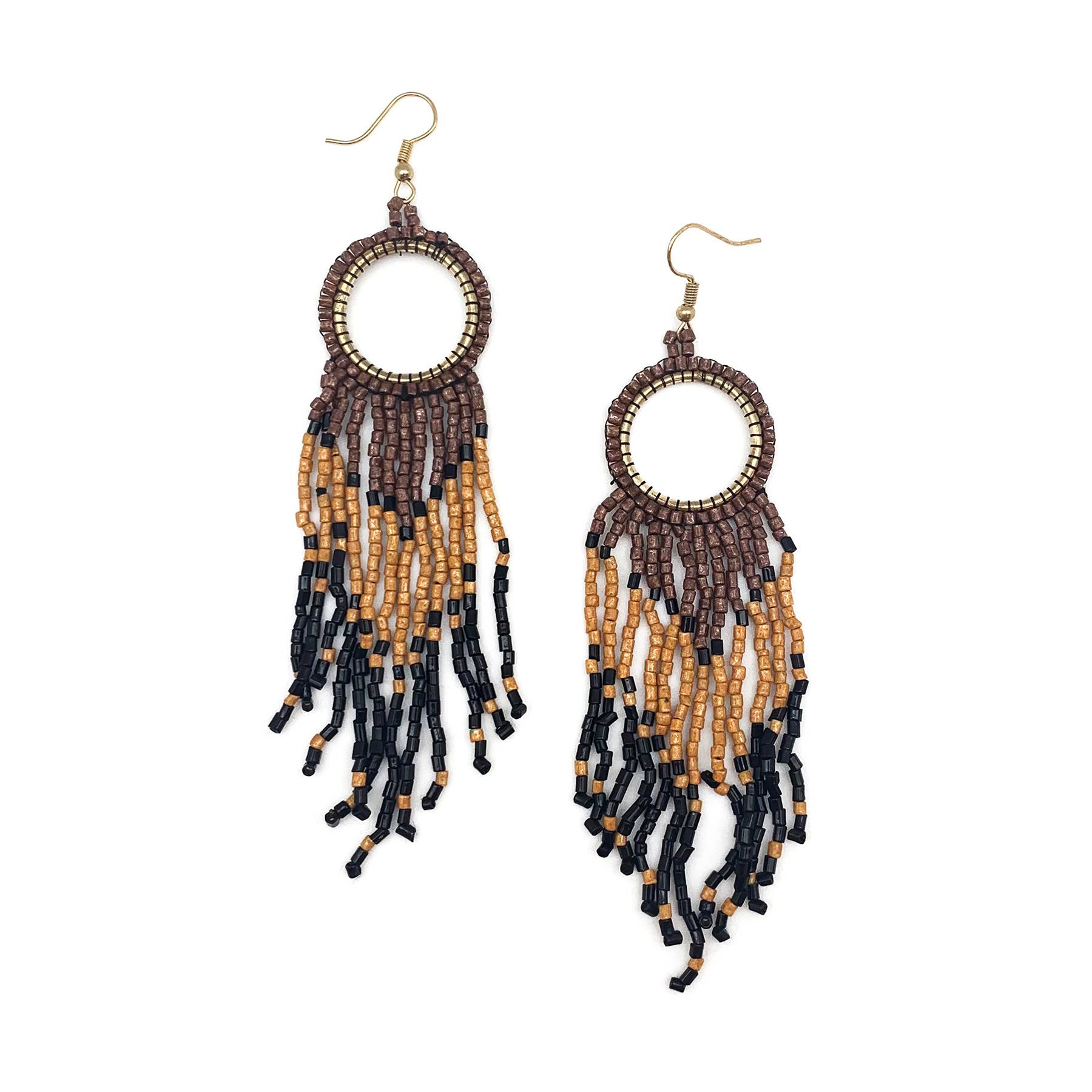 Beaded Safari EarringsOpen Circle with Bead Fringe!