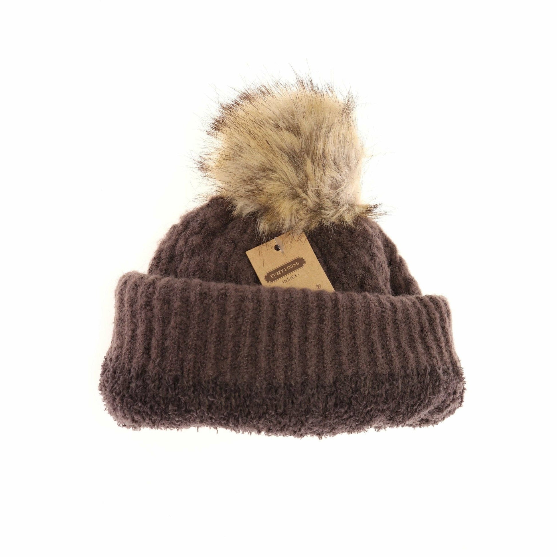Solid Smocked Stitch Fur Pom C.C Beanie hat